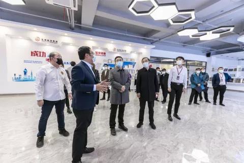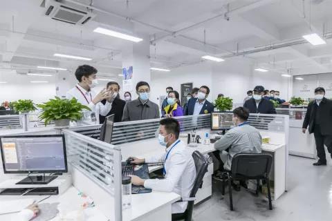 對龍采科技集團的內部辦公環境進行了參觀,了解各樓層服務結構劃分,并慰問龍采員工。